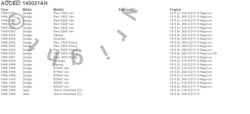 B1500 Van, B2500 Van, B3500 Van, Cherokee (XJ), Dakota, Durango, Grand Cherokee (WJ), Grand Cherokee (ZJ), Ram 1500, Ram 1500 Van, Ram 2500, Ram 2500 Van, Ram 3500, Ram 3500 Van, Wrangler (TJ), Dodge, Jeep, 2002, 2001, 2000 more…