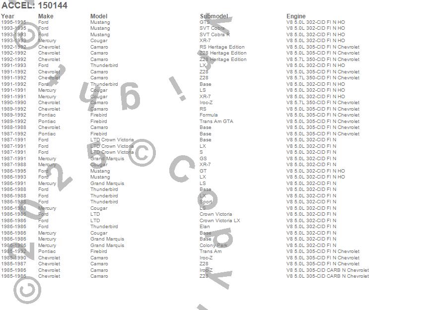 Camaro, Cougar, Firebird, Grand Marquis, LTD, LTD Crown Victoria, Mustang, Thunderbird, Chevrolet, Ford, Mercury, Pontiac, 1995, 1994, 1993, 1992, 1991, 1990, 1989, 1988 more…