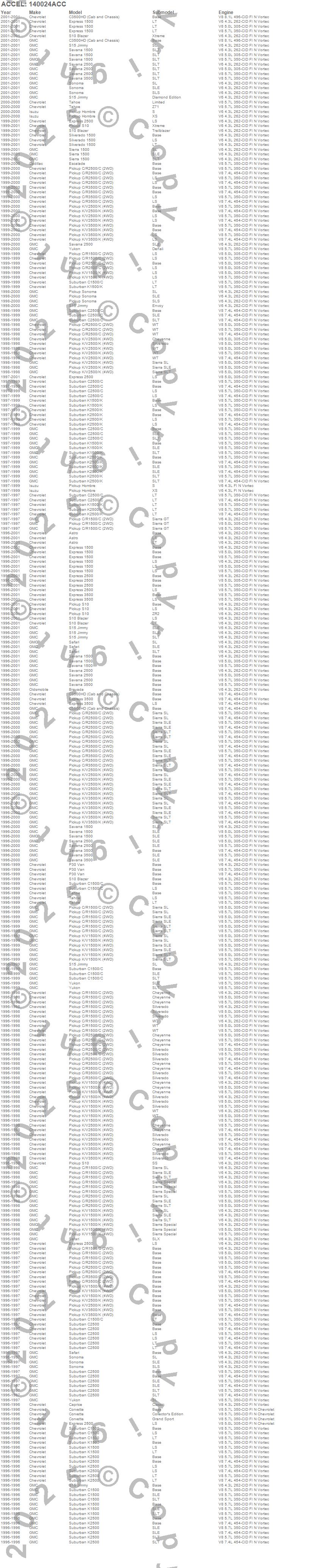 Astro, Bravada, C1500 Pickup, C1500 Suburban, C2500 Pickup, C2500 Suburban, C3500 Pickup, C3500HD, Camaro, Caprice, Commercial Chassis, Corvette, Escalade, Express 1500, Express 2500, Express 3500, Firebird, Fleetwood, Hombre, Impala more…