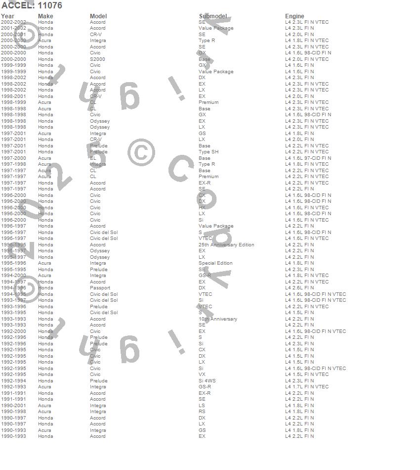 Accord, Civic, Civic del Sol, CL, CR-V, Integra, Odyssey, Passport, Prelude, S2000, Acura, Honda, 2002, 2001, 2000, 1999, 1998, 1997, 1996, 1995 more…