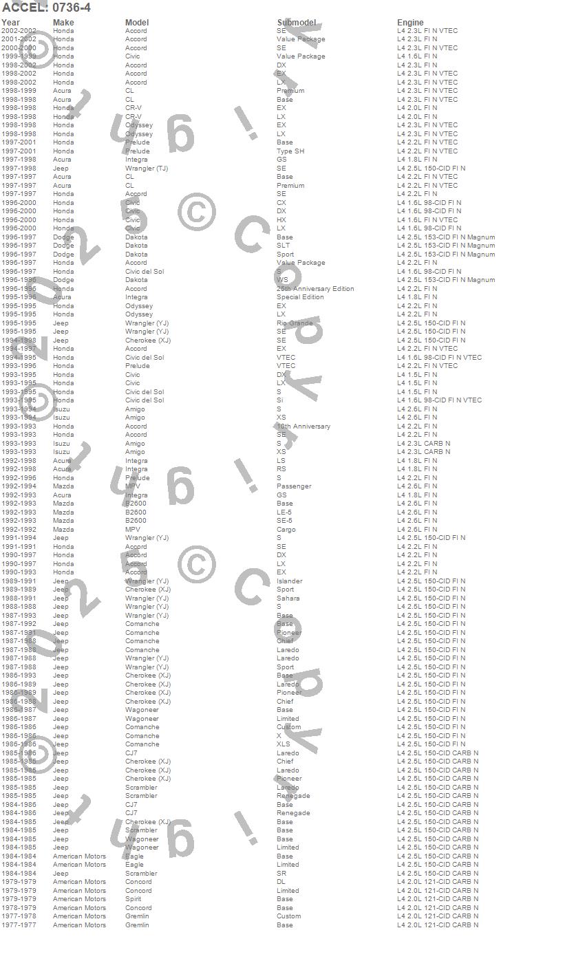 Accord, Amigo, B2600, Cherokee (XJ), Civic, Civic del Sol, CJ7, CL, Comanche, Concord, CR-V, Dakota, Eagle, Gremlin, Integra, MPV, Odyssey, Prelude, Scrambler, Spirit more…