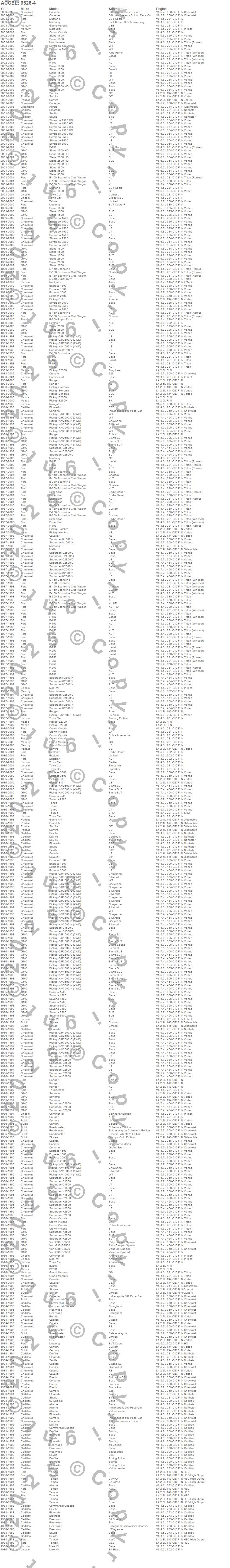 60 Special, Allante, Aurora, B2300, B2500, Beretta, C1500 Pickup, C1500 Suburban, C2500 Pickup, C2500 Suburban, C3500 Pickup, Camaro, Caprice, Cavalier, Century, Commercial Chassis, Continental, Corsica, Corvette, Cougar more…