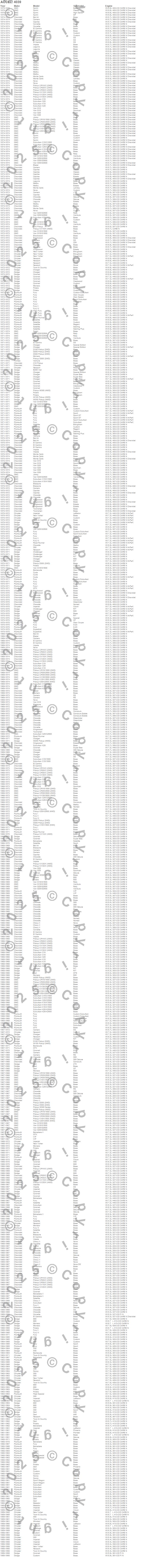 300, 330, 440, 880, B200 Van, Barracuda, Bel Air, Belvedere, Belvedere II, Biscayne, Blazer, Brookwood, C10 Pickup, C10 Suburban, C15/C1500, C15/C1500 Suburban, C20 Pickup, C20 Suburban, C25/C2500 Pickup, C25/C2500 Suburban more…