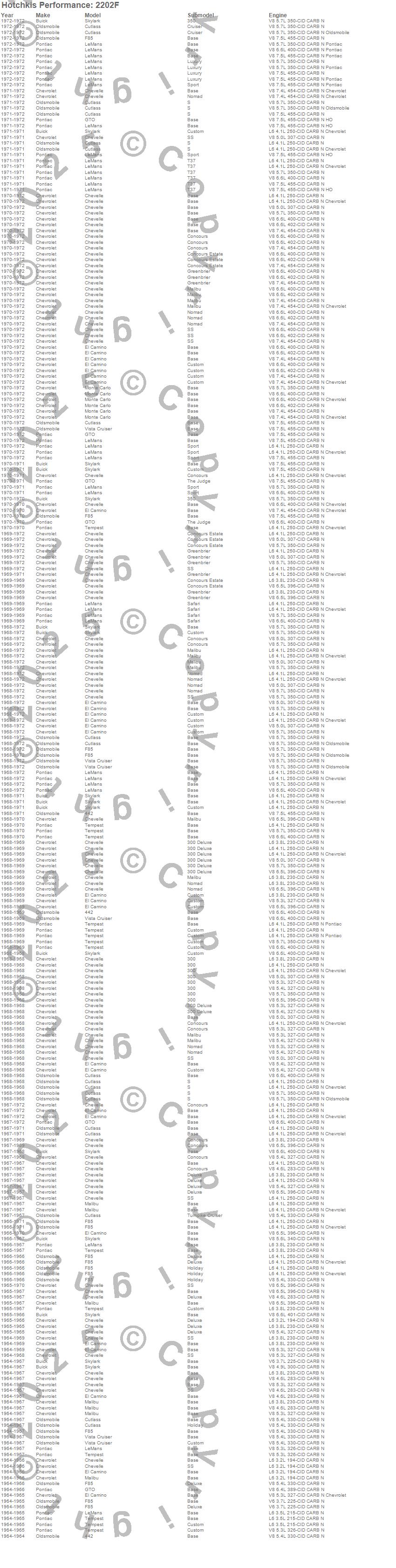 Below is an abreviated list of applications for the Sway Bar. 442, Chevelle, Cutlass, Cutlass Supreme, El Camino, F85, Gran Sport, Grand Prix, GS, GS 350, GS 400, GS 455, GTO, LeMans, Malibu, Monte Carlo, Skylark, Special, Sprint, Tempest more…