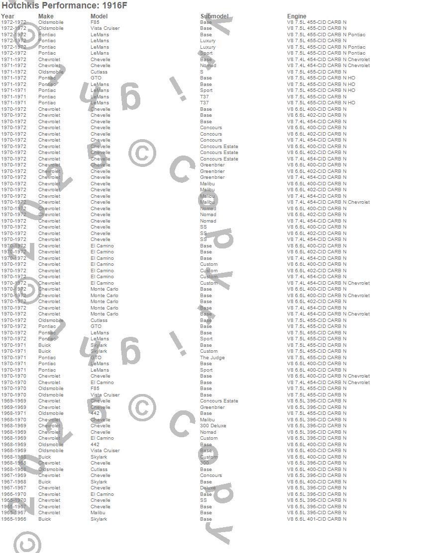 442, Chevelle, Cutlass, Cutlass Supreme, F85, Gran Sport, Grand Prix, GS, GS 350, GS 400, GS 455, GTO, LeMans, Malibu, Monte Carlo, Skylark, Special, Tempest, Vista Cruiser, Buick more…