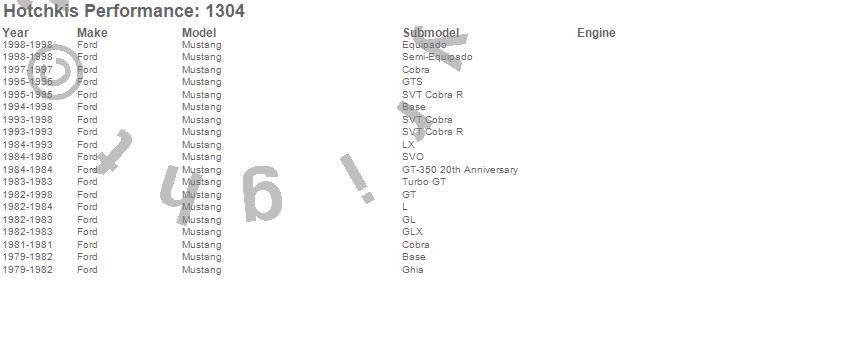Mustang, Ford, 1998, 1997, 1996, 1995, 1994, 1993, 1992, 1991, 1990, 1989, 1988, 1987, 1986, 1985, 1984, 1983, 1982, 1981 more…