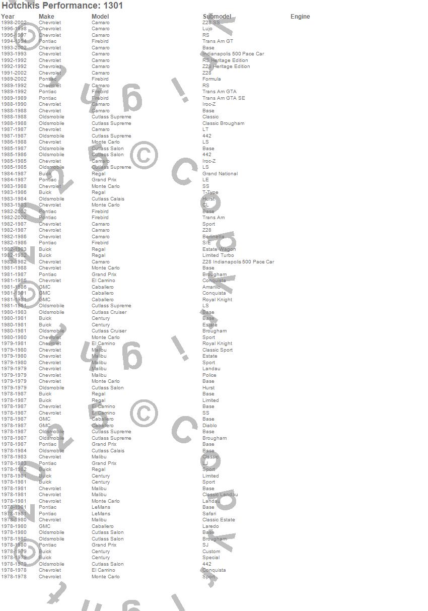 Caballero, Camaro, Century, Cutlass Calais, Cutlass Cruiser, Cutlass Salon, Cutlass Supreme, El Camino, Firebird, Grand Prix, LeMans, Malibu, Monte Carlo, Regal, Buick, Chevrolet, GMC, Oldsmobile, Pontiac, 2002 more…