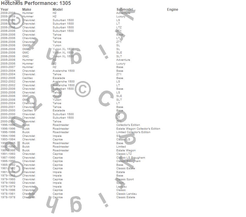 Avalanche 1500, Caprice, Commercial Chassis, Electra, Escalade, Escalade ESV, Escalade EXT, Estate Wagon, H2, Impala, LeSabre, Riviera, Roadmaster, Suburban 1500, Tahoe, Yukon, Yukon XL 1500, Buick, Cadillac, Chevrolet more…