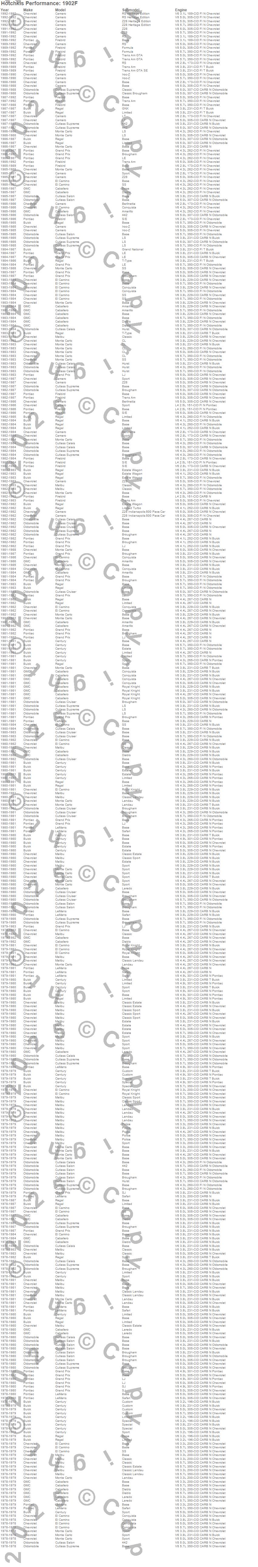 Caballero, Camaro, Caprice, Century, Cutlass, Cutlass Calais, Cutlass Cruiser, Cutlass Salon, Cutlass Supreme, El Camino, Firebird, Grand Prix, LeMans, Malibu, Monte Carlo, Regal, Buick, Chevrolet, GMC, Oldsmobile more…