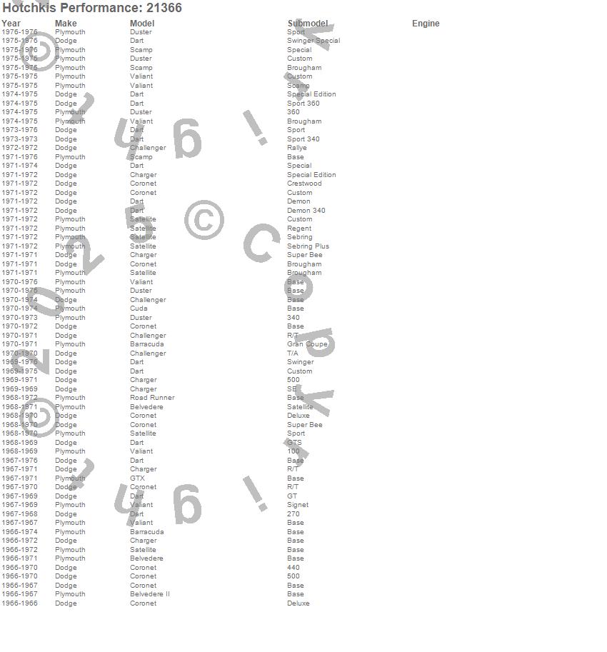 Barracuda, Belvedere, Belvedere II, Challenger, Charger, Coronet, Dart, Duster, GTX, Road Runner, Satellite, Scamp, Valiant, Dodge, Plymouth, 1976, 1975, 1974, 1973, 1972 more…