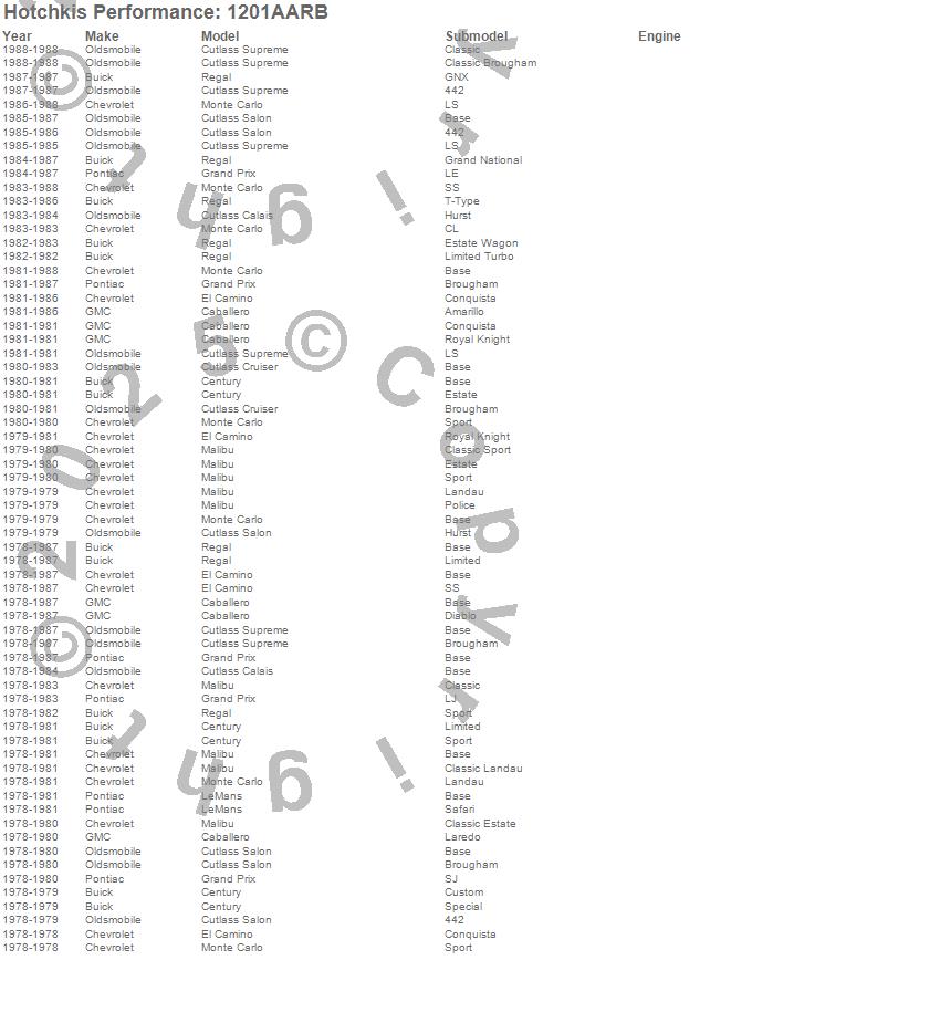 Caballero, Century, Cutlass Calais, Cutlass Cruiser, Cutlass Salon, Cutlass Supreme, El Camino, Grand Prix, LeMans, Malibu, Monte Carlo, Regal, Buick, Chevrolet, GMC, Oldsmobile, Pontiac, 1988, 1987, 1986 more…