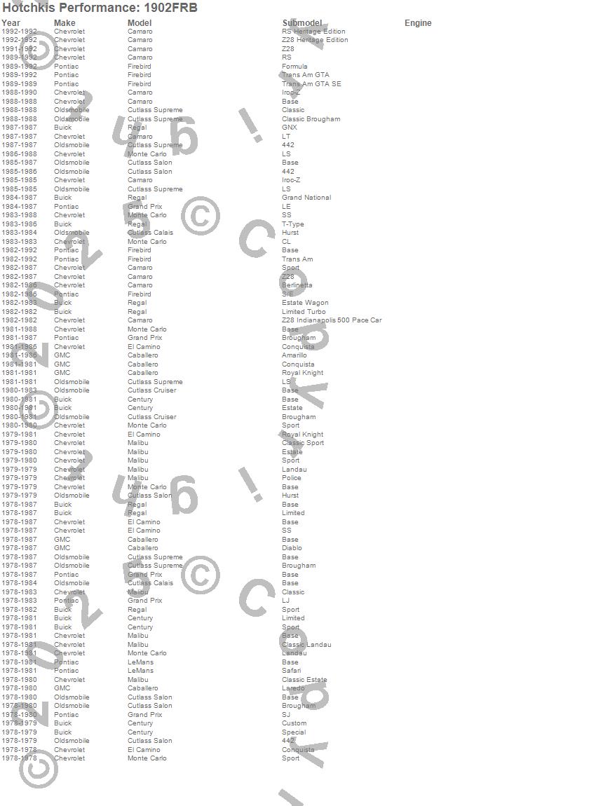 Caballero, Camaro, Caprice, Century, Cutlass, Cutlass Calais, Cutlass Cruiser, Cutlass Salon, Cutlass Supreme, El Camino, Firebird, Grand Prix, LeMans, Malibu, Monte Carlo, Regal, Buick, Chevrolet, GMC, Oldsmobile more…