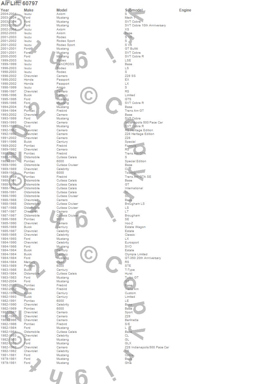 Below is an abreviated list of applications for the Air Lift 1000 Coil Spring.