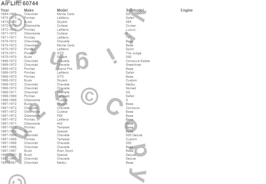 Below is an abreviated list of applications for the Air Lift 1000 Coil Spring.