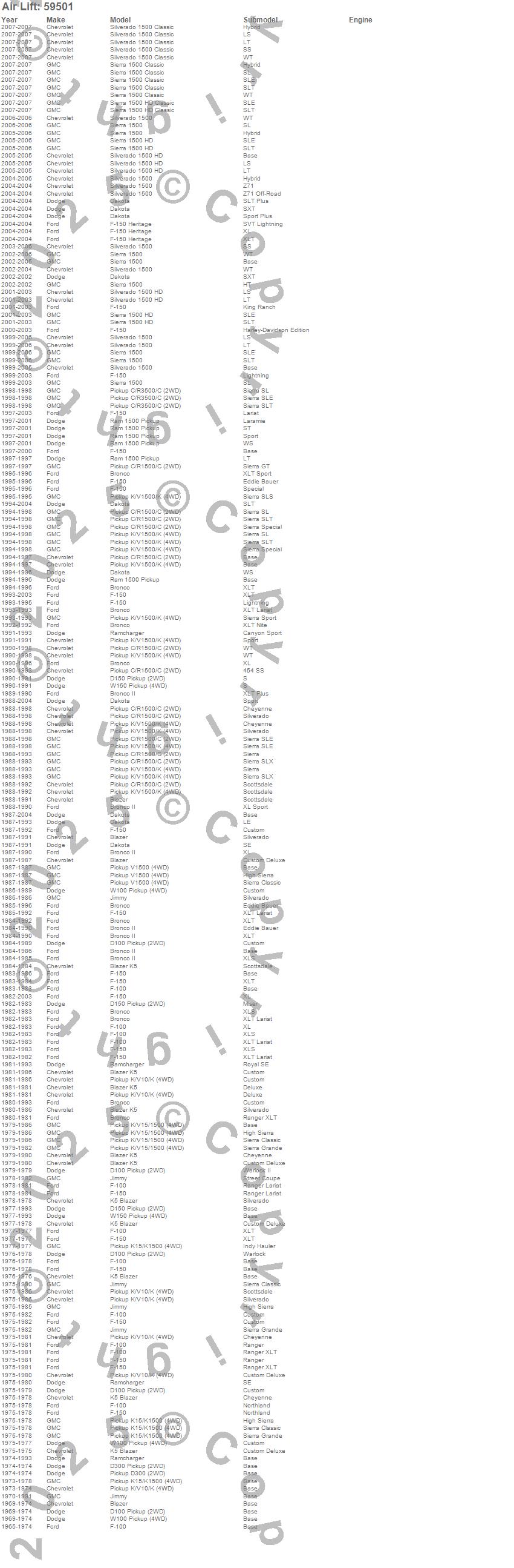Below is an abreviated list of applications for the Ride Control Kit.