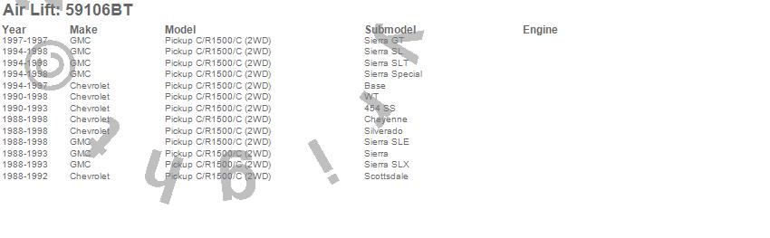 Below is an abreviated list of applications for the Slam Air Plus Adjustable Air Springs For Lowered Trucks.
