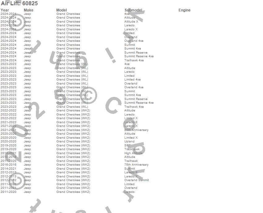 Below is an abreviated list of applications for the Air Lift 1000 Coil Spring.