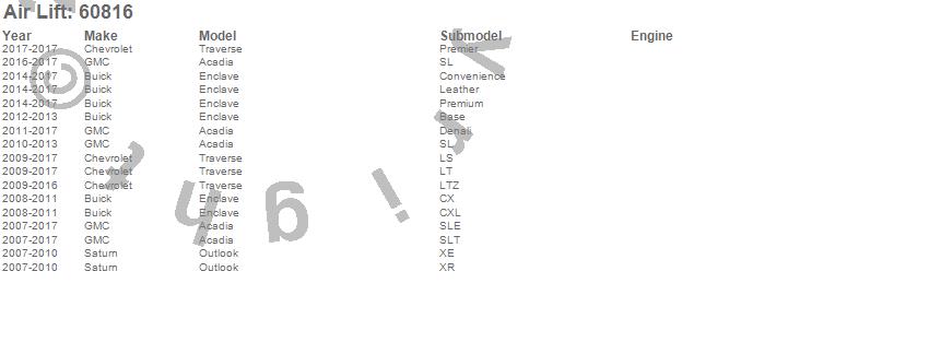 Acadia, Enclave, Outlook, Traverse, Buick, Chevrolet, GMC, Saturn, 2016, 2015, 2014, 2013, 2012, 2011, 2010, 2009, 2008, 2007 more…