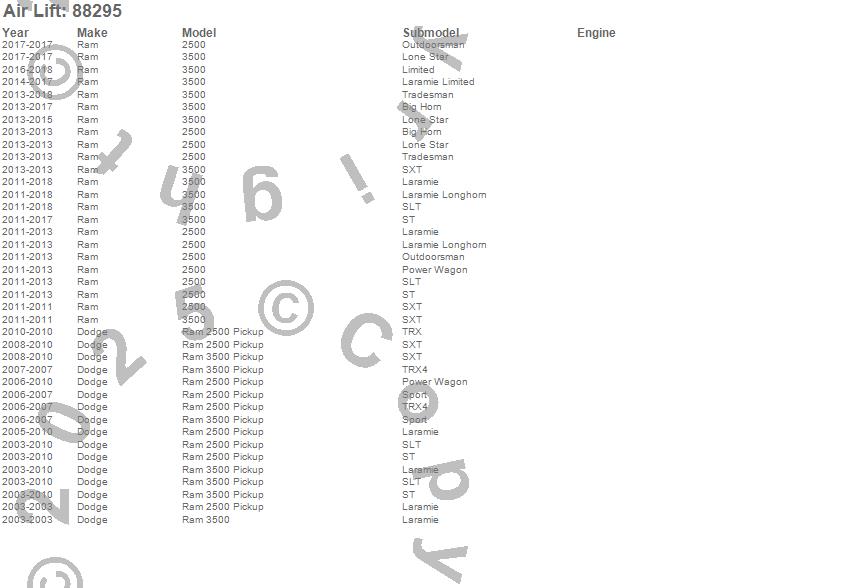 Below is an abreviated list of applications for the LoadLifter 5000 Ultimate Air Spring Kit.