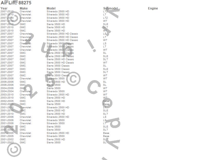 Below is an abreviated list of applications for the LoadLifter 5000 Ultimate Air Spring Kit.