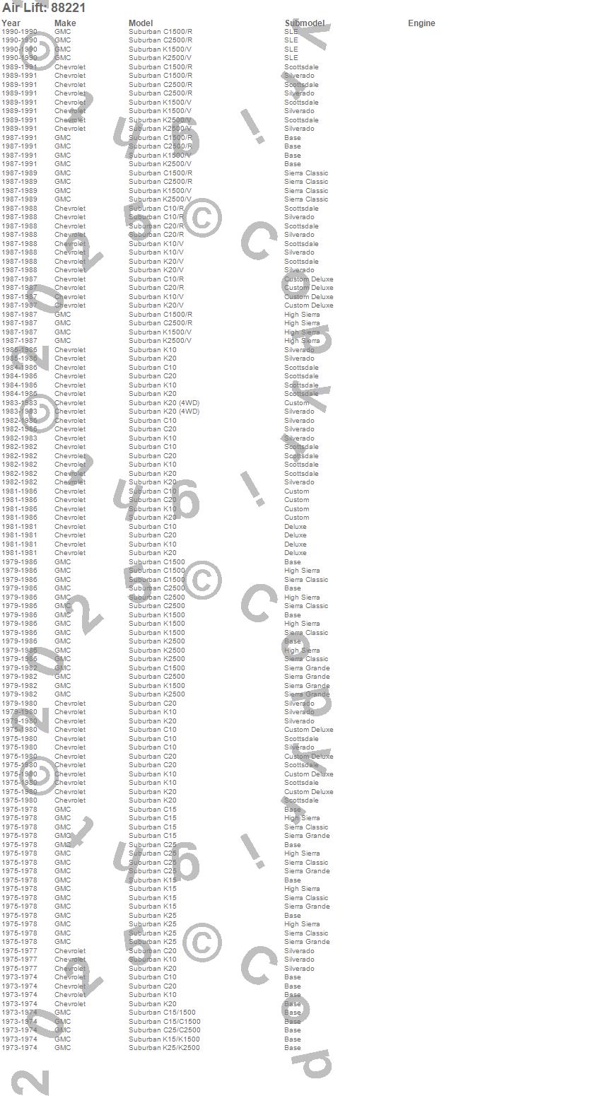 Below is an abreviated list of applications for the LoadLifter 5000 Ultimate Air Spring Kit.