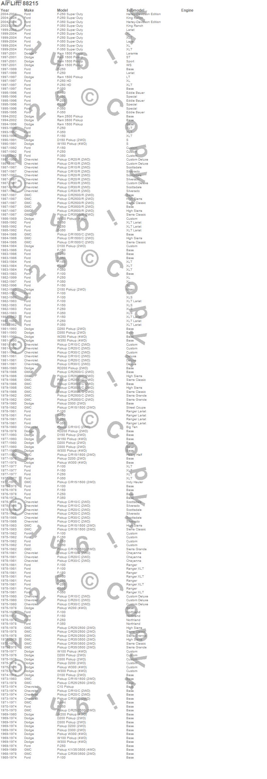 Below is an abreviated list of applications for the LoadLifter 5000 Ultimate Air Spring Kit.