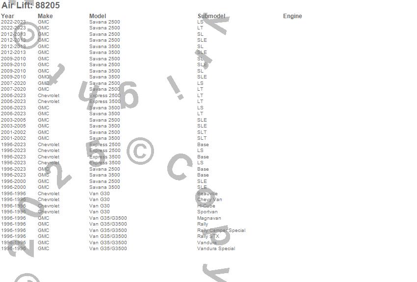 Below is an abreviated list of applications for the LoadLifter 5000 Ultimate Air Spring Kit.