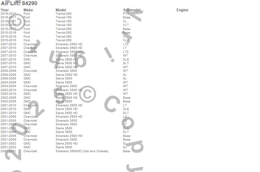 Below is an abreviated list of applications for the LoadLifter 5000 Ultimate Replacement Air Spring.