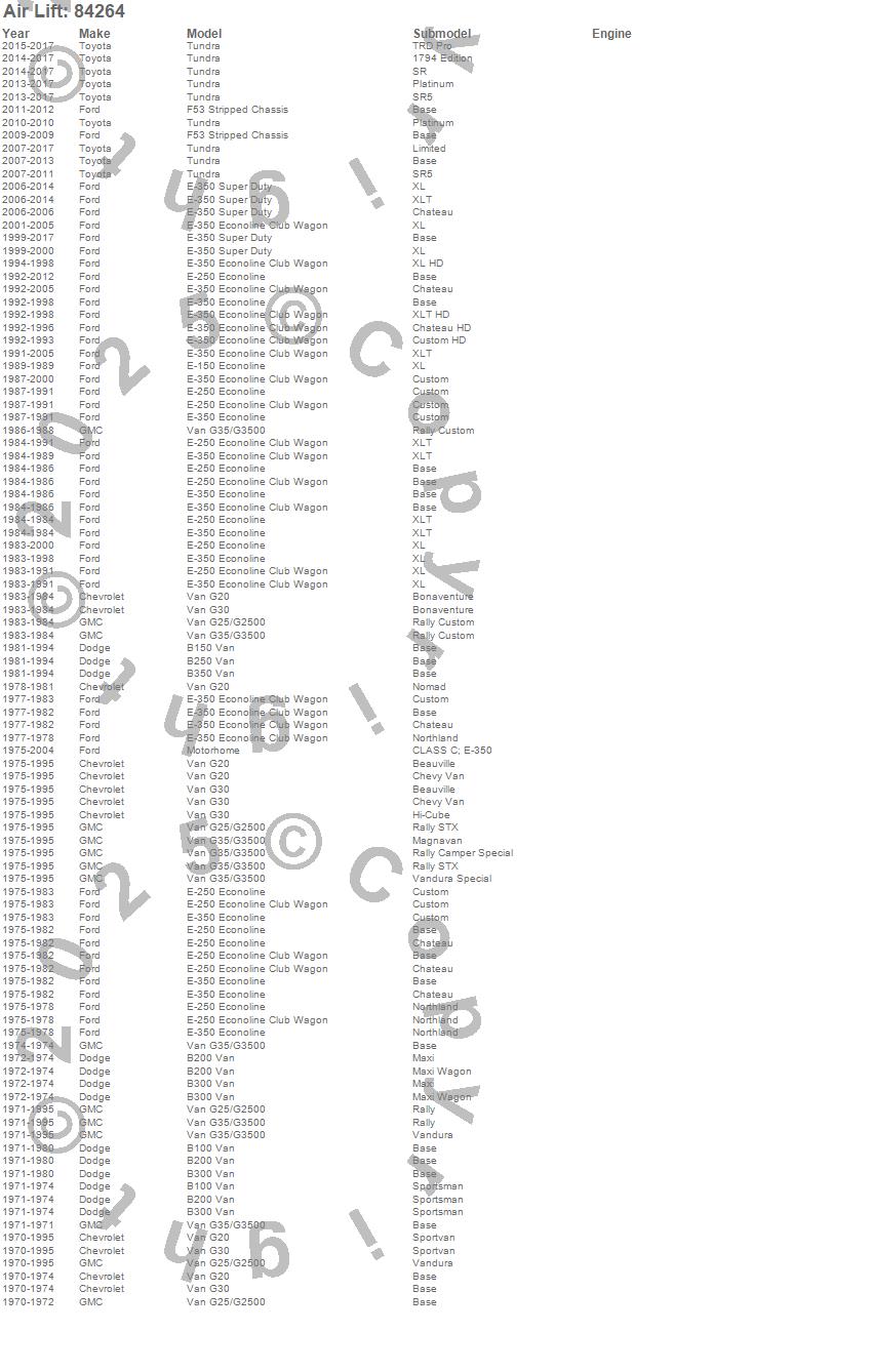 Below is an abreviated list of applications for the LoadLifter 5000 Ultimate Replacement Air Spring.