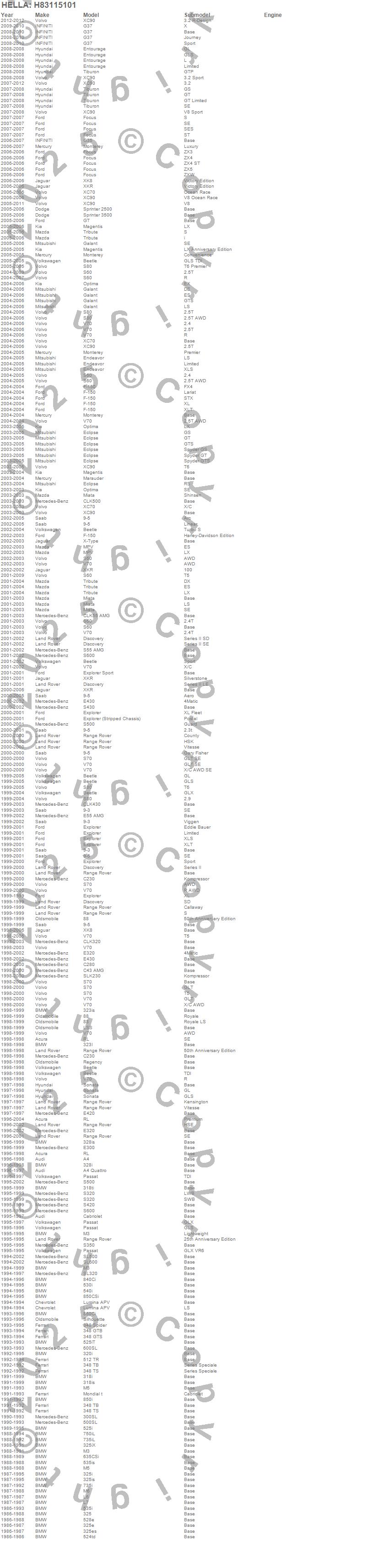 Below is an abreviated list of applications for the H1 Halogen Bulb.