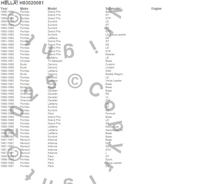 Alliance, Cavalier, Century, Fiero, Grand Prix, LeMans, Optima, Reatta, Sunbird, TC Maserati, Buick, Chevrolet, Chrysler, Pontiac, Renault, 1996, 1995, 1994, 1993, 1992 more…