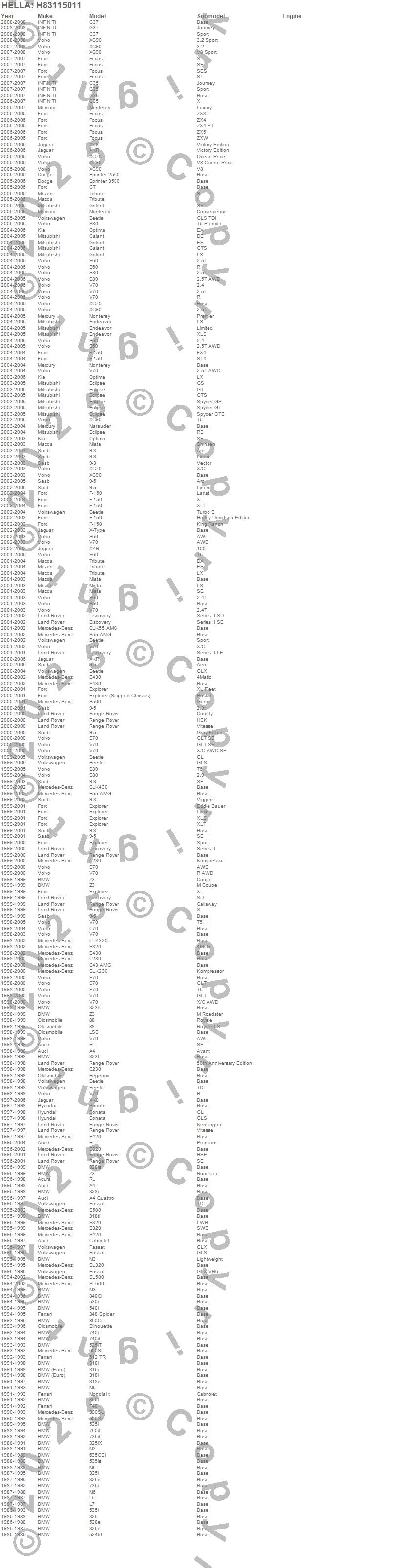 Below is an abreviated list of applications for the H1 Yellow Star Halogen Bulb.