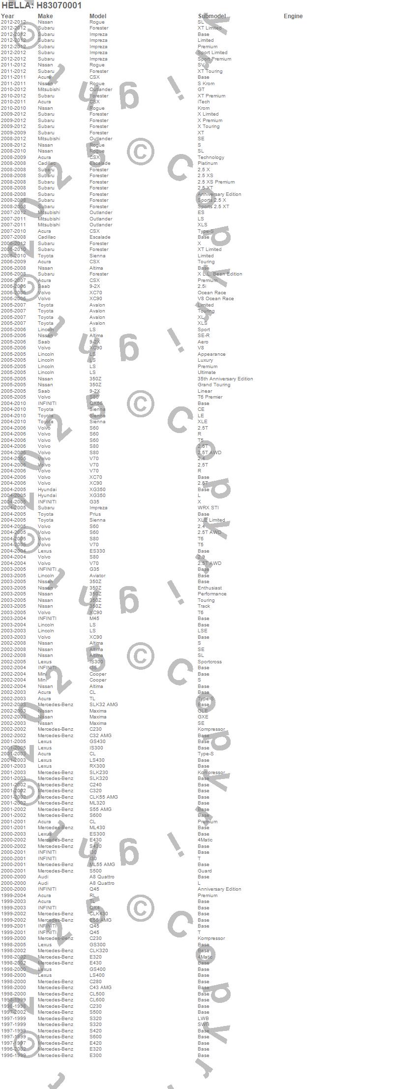 350Z, 9-2X, A8 Quattro, Altima, Avalon, Aviator, C230, C240, C280, C32 AMG, C320, C43 AMG, CL, CL500, CL600, CLK320, CLK430, CLK55 AMG, Cooper, CSX more…