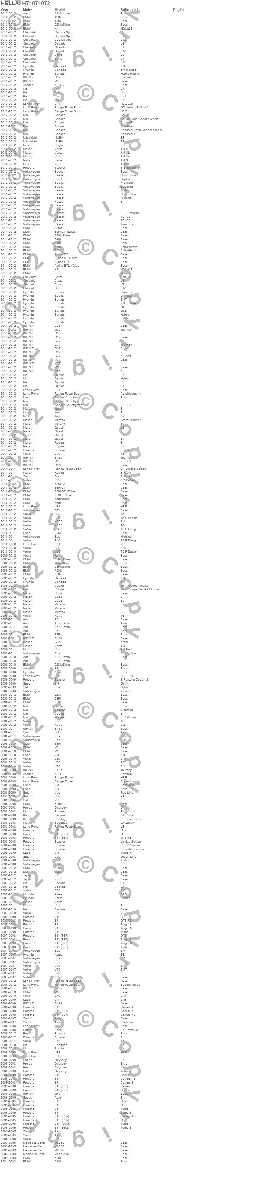 Below is an abreviated list of applications for the Optilux XY Series H8 Xenon Halogen Bulb.