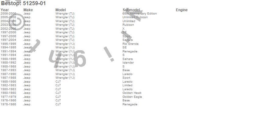 CJ7, Wrangler (LJ), Wrangler (TJ), Wrangler (YJ), Jeep, 2006, 2005, 2004, 2003, 2002, 2001, 2000, 1999, 1998, 1997, 1995, 1994, 1993, 1992, 1991 more…