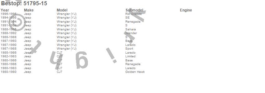 CJ7, Wrangler (YJ), Jeep, 1995, 1994, 1993, 1992, 1991, 1990, 1989, 1988, 1987, 1986, 1985, 1984, 1983, 1982, 1981, 1980 more…