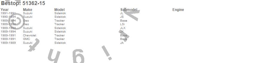 Below is an abreviated list of applications for the Replace-A-Top Soft Top.