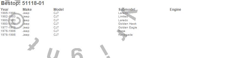 Below is an abreviated list of applications for the Replace-A-Top Soft Top.