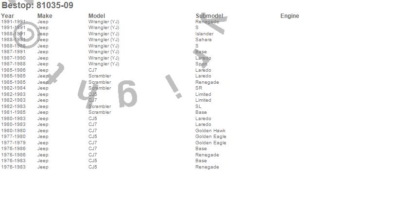 Below is an abreviated list of applications for the All Weather Trail Cover For Jeep.