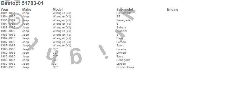 CJ7, Wrangler (YJ), Jeep, 1995, 1994, 1993, 1992, 1991, 1990, 1989, 1988, 1987, 1986, 1985, 1984, 1983, 1982, 1981, 1980 more…