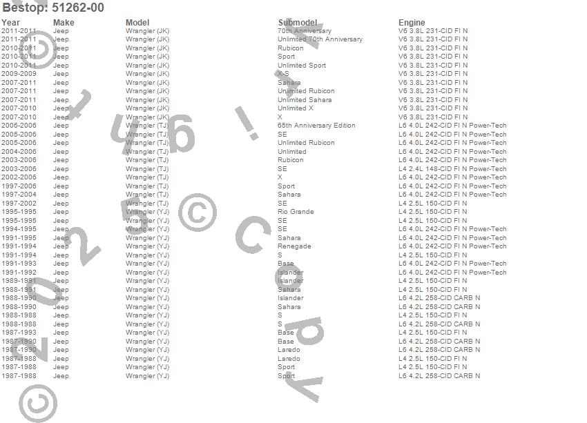 Wrangler (JK), Wrangler (LJ), Wrangler (TJ), Wrangler (YJ), Jeep, 2011, 2010, 2009, 2008, 2007, 2006, 2005, 2004, 2003, 2002, 2001, 2000, 1999, 1998, 1997 more…