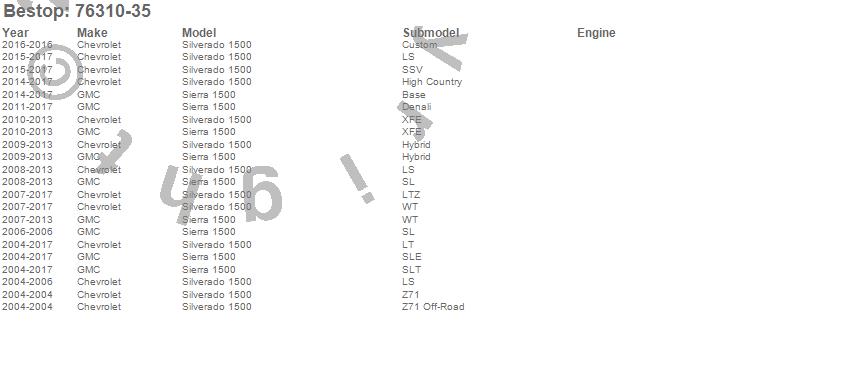 Below is an abreviated list of applications for the Supertop Truck Bed Top.
