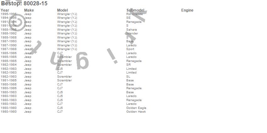 CJ5, CJ7, Scrambler, Wrangler (YJ), Jeep, 1995, 1994, 1993, 1992, 1991, 1990, 1989, 1988, 1987, 1986, 1985, 1984, 1983, 1982, 1981 more…