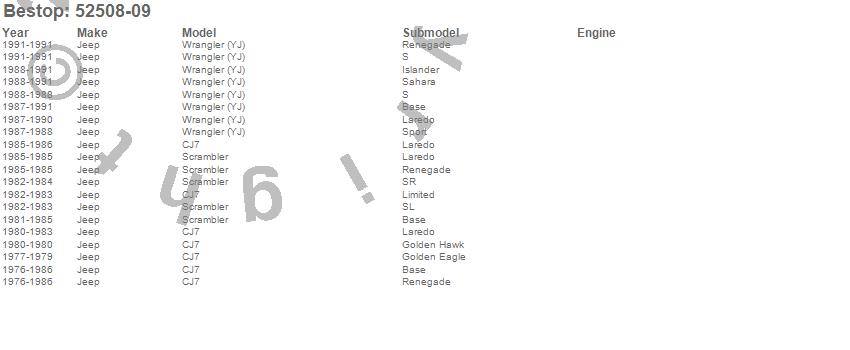 Below is an abreviated list of applications for the Bikini Top Traditional Style.
