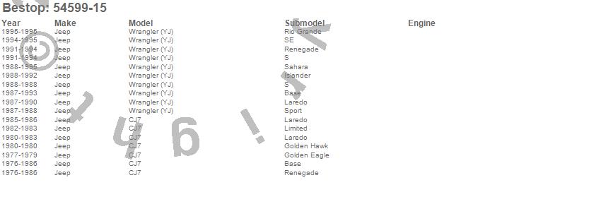 Below is an abreviated list of applications for the Supertop Classic Soft Top.