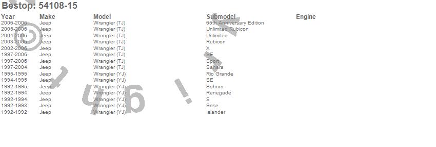 Wrangler (LJ), Wrangler (TJ), Wrangler (YJ), Jeep, 2006, 2005, 2004, 2003, 2002, 2001, 2000, 1999, 1998, 1997, 1995, 1994, 1993, 1992 more…