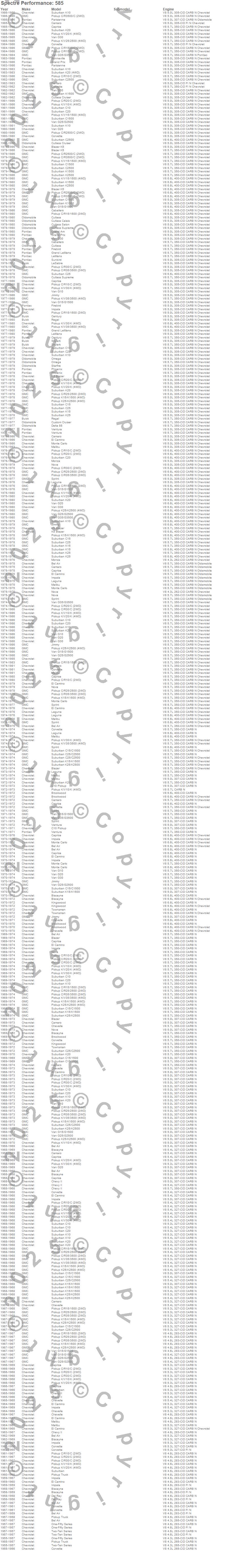 Bel Air, Biscayne, Blazer, Blazer K5, Bonneville, Brookwood, C10 Pickup, C10 Suburban, C15 Suburban, C15/C1500, C15/C1500 Suburban, C1500, C1500 Suburban, C20 Pickup, C20 Suburban, C25 Suburban, C25/C2500 Pickup, C25/C2500 Suburban, C2500 Pickup, C2500 Suburban more…