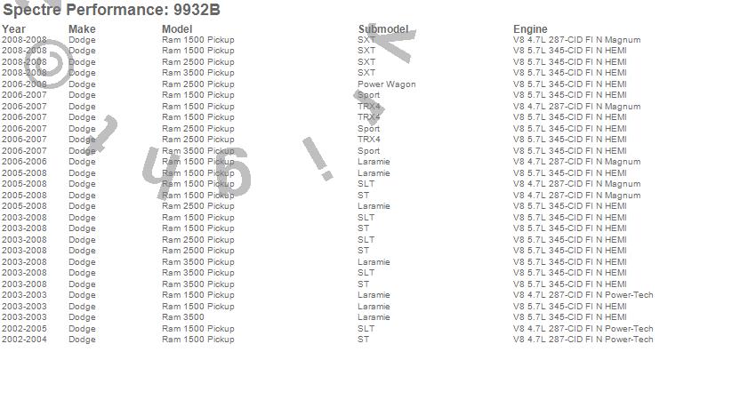 Below is an abreviated list of applications for the Air Intake Kit.