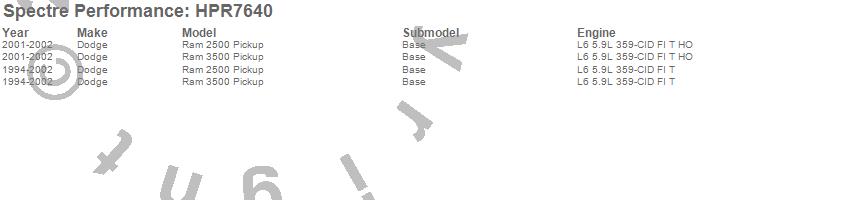Below is an abreviated list of applications for the HPR OE Replacement Air Filter.