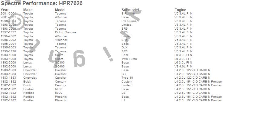 Below is an abreviated list of applications for the HPR OE Replacement Air Filter.